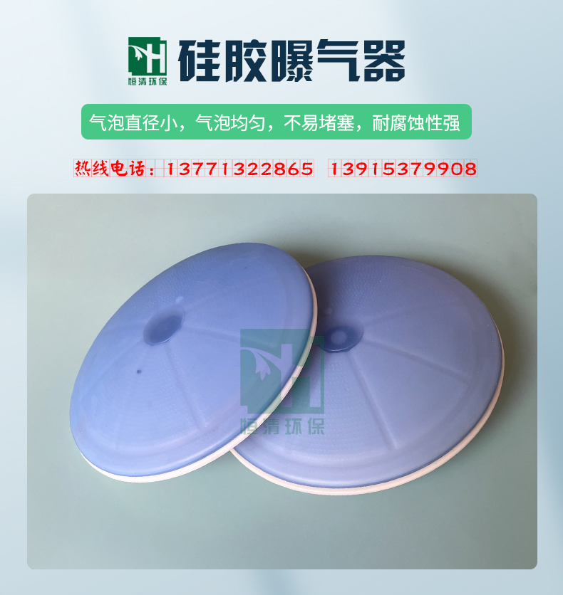 硅膠膜片式微孔曝氣器是研制的新型曝氣裝置,該裝置曝氣氣泡小、氣液面積大,氣泡擴散均勻,不會產(chǎn)生孔眼堵塞,耐腐蝕性強。但通過多年的運行出現(xiàn)了一些難以解決的不足。如:膜片脫落、膜片撕裂、膜片打不開、污泥進入支氣管等問題。