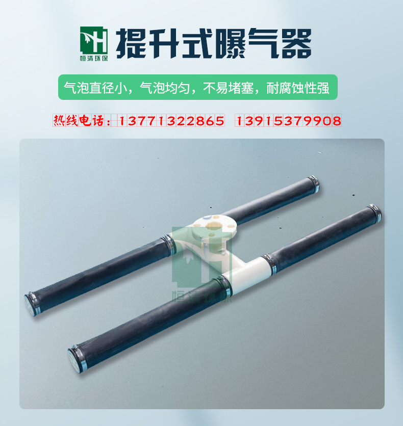 可提升管式微孔曝氣器采用進口EPDM橡膠,曝氣膜管質量、品質保證,微孔不易破裂,性能可靠,不堵塞,環向受力均勻,使用壽命更長、安裝方便,池內有水無水均可安裝,池內無需任何配置。長時間曝氣如需維修,可自由提升維修,無需放水、無需關停風機,不影響正常運行,無需反沖洗,管理更方便。原在池底固定安裝的各種曝氣器,在原進氣管道不變的條件下,可直接改造為本可提升管式微孔曝氣器。