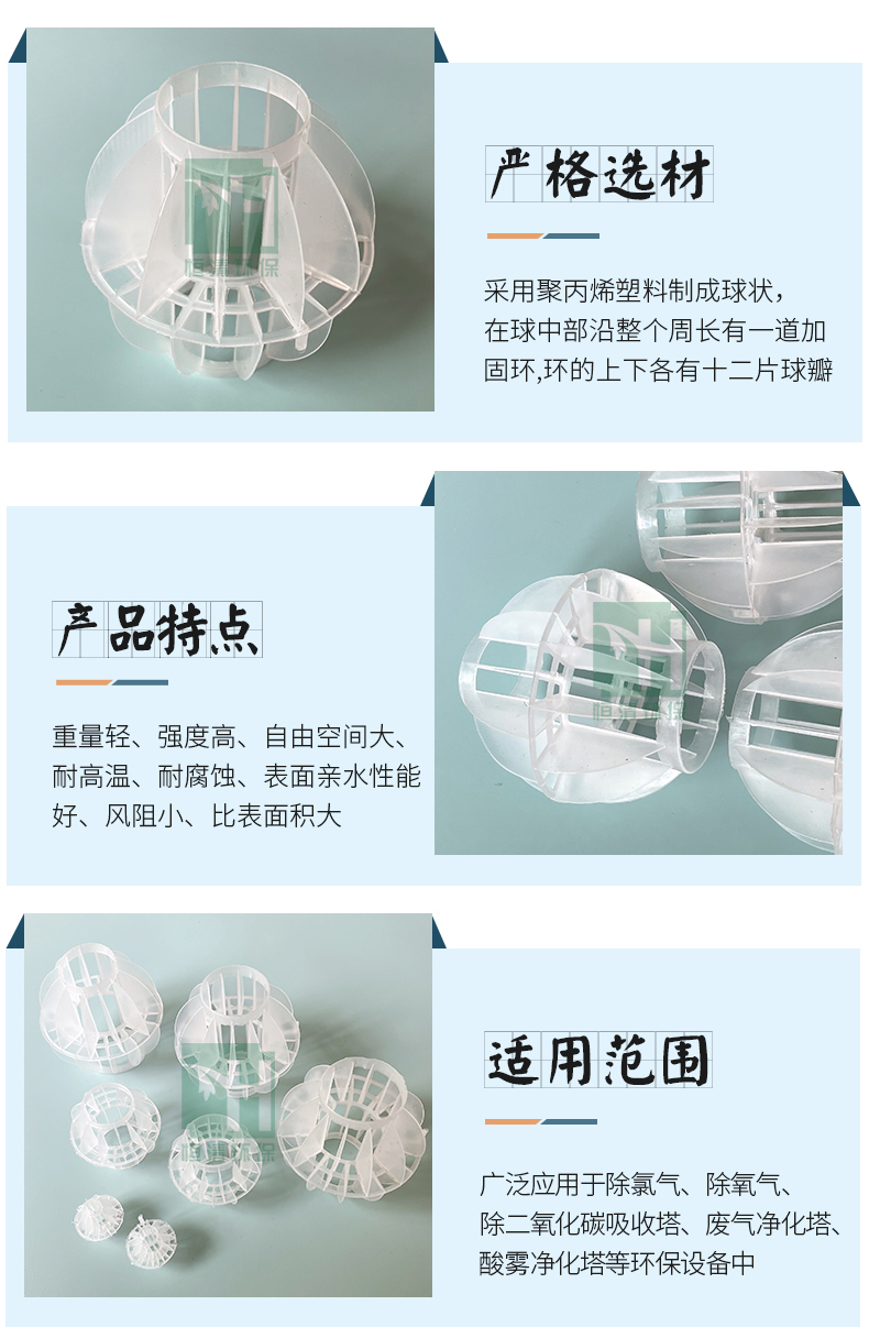 廣泛應(yīng)用于除氯氣、除氧氣、除二氧化碳吸收塔、廢氣凈化塔、酸霧凈化塔等環(huán)保設(shè)備中。