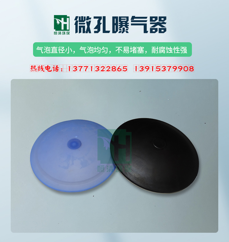盤式微孔曝氣器是80年代研制的 新型曝氣裝置,該裝置曝氣氣泡直徑小,氣液界面直徑小,氣液界面積大,氣泡擴散均勻,不會產生孔眼堵塞,耐腐蝕性強,經上海同濟大學環境工程學院和中國市政工程華北設計院進行清水和污水充氧測試,并經50多家用戶多年使用效果良好(比常規產品固定螺旋曝氣器,散流曝氣器和穿孔管曝氣器能耗降低40%,或增加污水處理量40%)。特別適用于城市污水和大型工廠新建擴建和老曝氣池改造,且曝氣池可間歇運行。