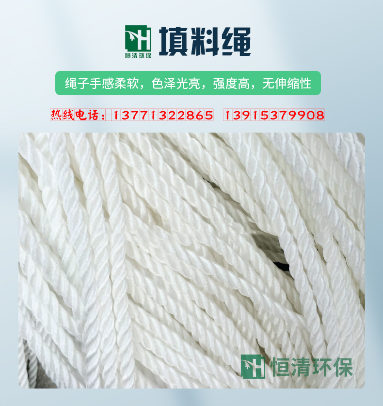 填料繩為白色全新料高密度聚乙烯繩,繩子手感柔軟,色澤光亮,強度高,無伸縮性,可以應客戶的要求長度來剪,量大從優!
