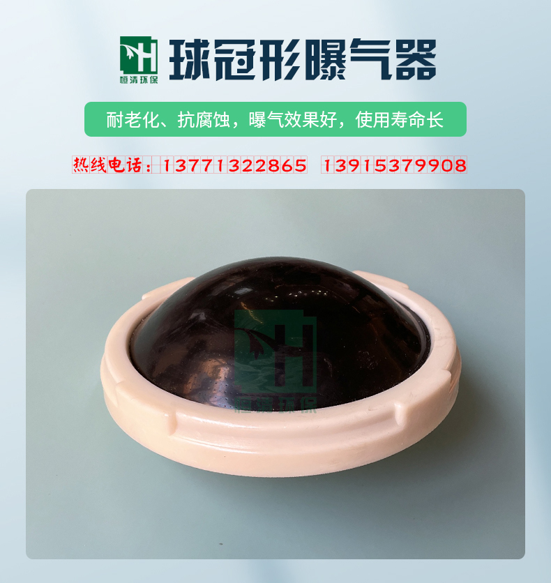 球冠形可張微孔曝氣器,是本單位根據污水生物處理的工藝特點,在原膜片式微曝氣器的基本上,進行專項研制開發的新型曝氣裝置。